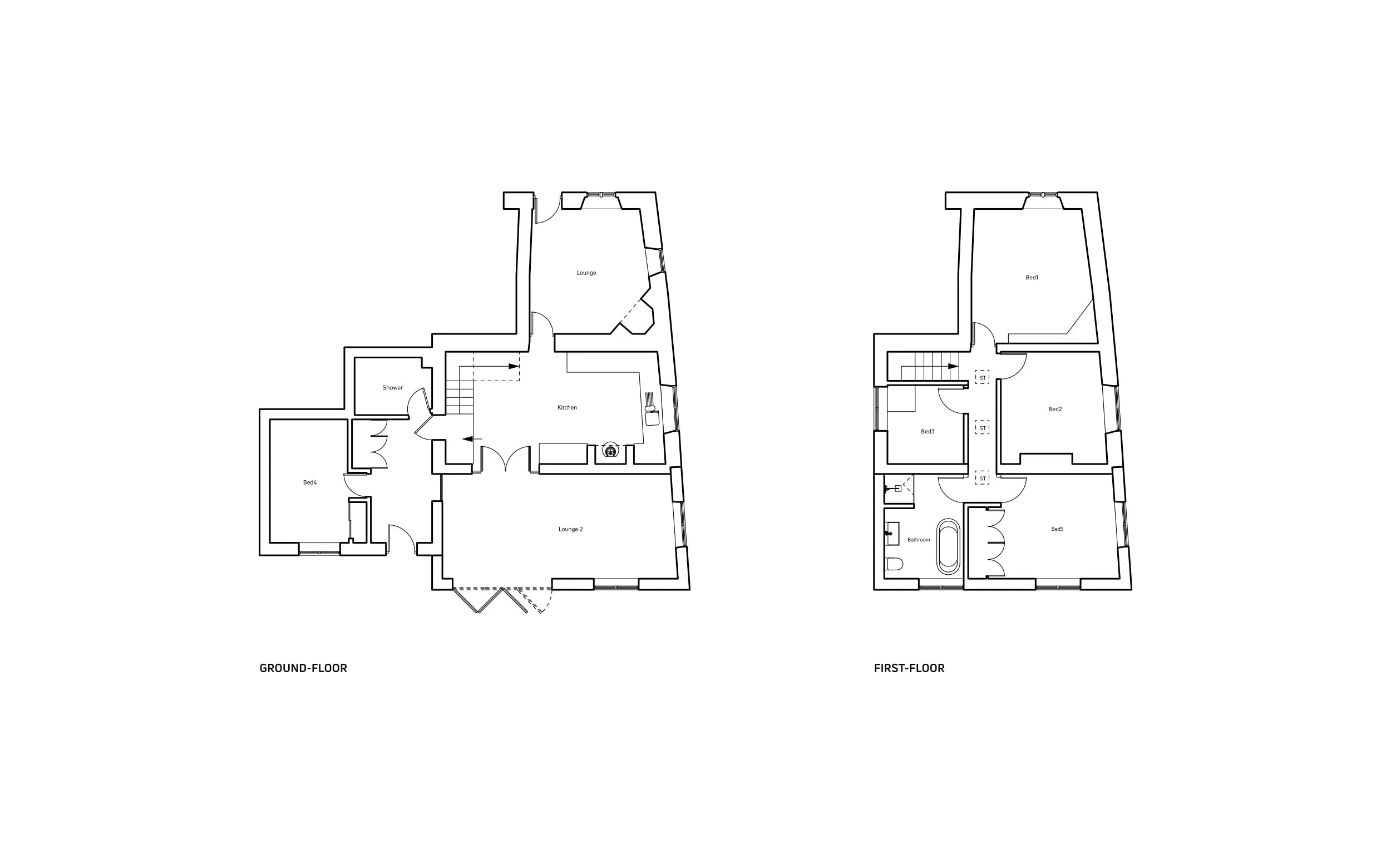 The crowning achievement of this transformation is the spacious two-storey gable end extension that now graces the cottage. At its heart is a generous kitchen-diner that seamlessly flows into the garden, creating a harmonious indoor-outdoor connection. By knocking down the wall that once separated the old kitchen and lounge, the design has yielded a much larger and brighter family living space. This open concept design fosters a sense of togetherness and modern living, making the most of natural light and outdoor views.